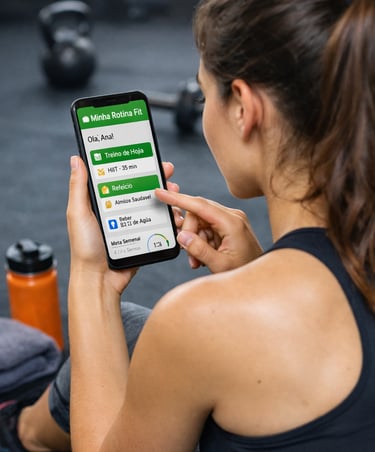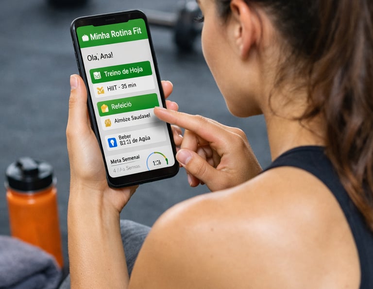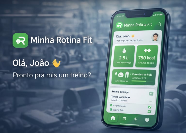 Minha Rotina Fit é um aplicativo web para organizar treinos, alimentação e hábitos saudáveis, acessível pelo navegador, sem necessidade de instalação.