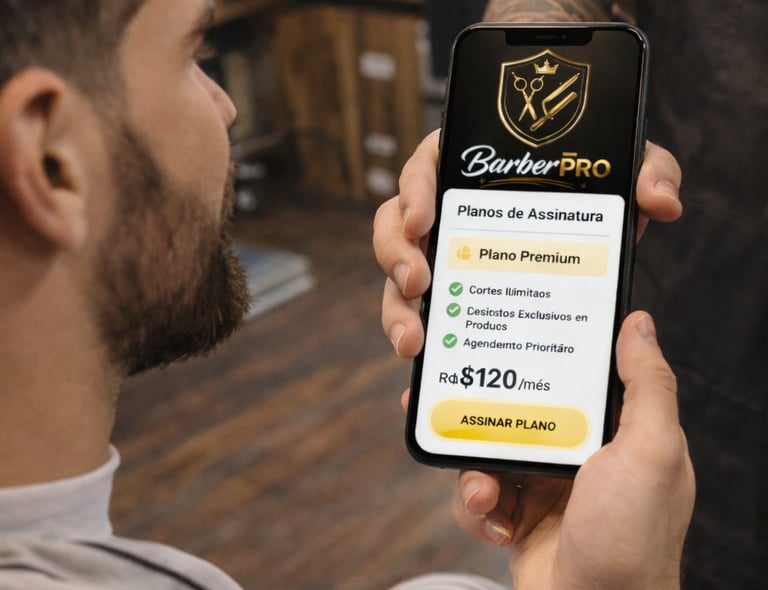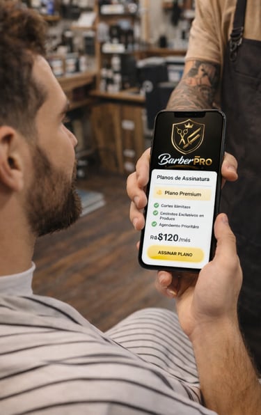 BarberPro é um aplicativo web para barbearias que facilita o agendamento de horários, a gestão de serviços e planos de assinatura, acessível diretamente pelo navegador, sem necessidade de instalação.